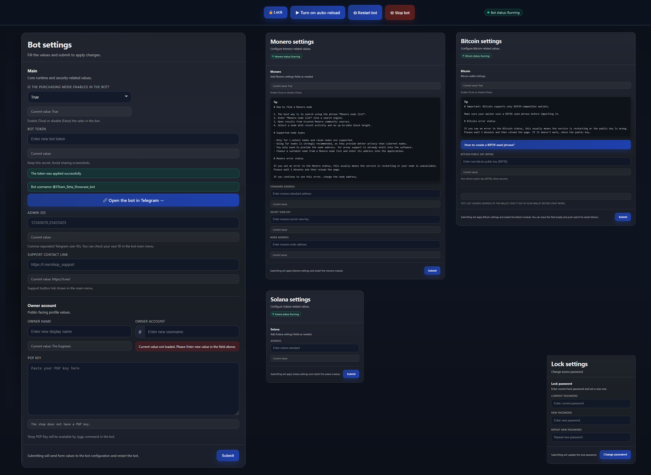 It gives you full control: accept crypto payments, manage orders, update listings,